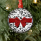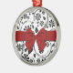 Este modelo blanco y negro ofrece las flores negras de la margarita en un fondo blanco y un arco rojo.