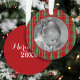Celebra la temporada navideña con este adorno navideño personalizado de foto con cuadros rojos festivos. Con un clásico patrón de cuadros escoceses rojos, verdes y blancos, este adorno añade un toque cálido y tradicional a tu árbol de Navidad.