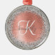 Personaliza fácilmente este diseño de Navidad de moda de moda en el diseño de adornos de vacaciones con purpurina brillante de bonito plateado sobre un fondo metálico rosa de color dorado.