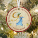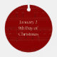 Alégrense en el 9º día de Navidad con este elegante adorno "Nueve damas bailando" de la colección de los Doce (12) Días de Navidad. El diseño presenta a una dama agraciada en un vestido azul fluido en medio de un baile junto a un gran "9" dorado brillante, que simboliza la alegría y la celebración. El fondo de partitura de pergamino suavemente desvanecido le da un toque de encanto vintage, mientras que un borde circular rojo enmarca la escena. En la parte superior, en arco, está la línea del villancico "El noveno día de Navidad mi verdadero amor me dio", y en la parte inferior, curvado, "nueve damas bailando". Pequeñas peras doradas a cada lado unen el diseño con el resto de la serie.