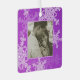Patrón festivo encantador, moderno y de moda con copos de nieve blancos sobre fondo morado con foto familiar de personalizable y el guión de 'Nuestra Primera Navidad'. El diseño incluye el nombre de la familia y el año fácil de personalizar. El fondo es violeta y está decorado con un cuadro de copos de nieve blancos que cubren su superficie. Los copos de nieve se detallan con líneas finas, creando un intrincado efecto de tipo encaje. El texto está escrito en un guión fluido y cursivo que añade un toque personalizado a la decoración. El conjunto es encantador y alegre, con un tema de vacaciones claras. Un regalo perfecto para Navidades, personalizable con tu propio texto. Perfecto para una pareja que pase su primera Navidad juntos, un aguijón que conmemora su primera temporada navideña juntos como una pareja casada, para comprar después del boda para celebrar este momento especial.