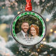 Primera Navidad casada con el Sr. y la Sra. Personalizado de fotografía Navidades de ornamentos Metalizado Green Gingham Pattern. Elegante, rústico, de estilo rústico. Celebra tu primera temporada de fiestas como pareja casada con este elegante adorno de fotos metalizado "Nuestra primera Navidad como Sr. y Sra.". Impreso en aluminio premium con un acabado mate moderno, este adorno personalizado incluye tu boda favorito o foto de compromiso con un suave overlay de luces festivas. ¡Un recuerdo atemporal de tu árbol año tras año! Simplemente sube tu foto y personaliza los nombres y el año Diseño metalizado duradero con una impresión nítida y vibrante Perfect boda don o newly Christmas Preses listo para colgar con una cinta festiva personalizable completo - editar el tipo de letra, el color, el tamaño y la disposición bajo "Más personalización" para que coincida con tu estilo.