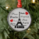 Ilustracion de diseño de textos en París con la Torre Eiffel y decoración de corazones rojos. Es posible cambiar el color de fondo y añadir uno diferente al diseño con su elección.