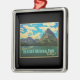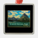 Un hermoso cielo azul de las montañas del Parque Nacional Glacier en este divertido diseño de viajes de estilo vintage.
