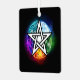 Pentagrama luminoso de dibujo artístico con cinco elementos mágicos, agua, tierra, fuego, astral, aire sobre fondo negro. Pentagrama de Wiccan. Wicca