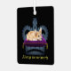 Un corgi triste sobre un cojín morado con borlas de oro, gráfico de una corona en el fondo, texto completamente personalizable