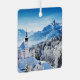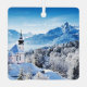 Una hermosa escena de invierno con montañas e iglesia, editar texto