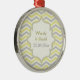 Diseño ornamento personalizado de diseño de diseño de patrón de chevron amarillo, gris, marfil. Hay un cuadro con tus nombres en el centro. Añade tu texto, monograma o iniciales. Un diseño elegante de zag zig con rayas clásicas con un aspecto contemporáneo pero vintage que se puede personalizar. Puede cambiar el fondo y el color del texto eligiendo entre más de 200 colores de la gráfica de color Zazzle. Diseño elegante, elegante y lúdico para proteger tus dispositivos electrónicos.
