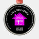 Este es un elegante Personalizable en el que se vende el adorno del Realtor de referencia de amor inmobiliario. La imagen muestra una casa PINK CALIENTE con tipografía blanca. La O de HOME se sustituye por una clave. El texto curvo externo puede tener su nombre, nombre de la empresa y datos de contacto, o un mensaje personal a su cliente, por ejemplo, gracias. El texto dice VENDO BIENES INMOBILIARIOS Y CONGRAMAS EN TU PRÓXIMO NUEVO HOGAR con un versículo opcional de la Biblia Joshua 24:15 - En cuanto a mí y a mi casa, serviremos al Señor. TODO EL TEXTO ES TOTALMENTE PERSONALIZABLE, por lo que puede personalizar la redacción para que se ajuste a sus necesidades. Ideal para promoción de marca.