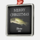 Deséenle a un pescador unas vacaciones felices con este moderno diseño Bass Fshing Hobby Feliz Navidad Personalizado Ornamento Metalizado. Está diseñado con un fondo negro de personalizable y un gran lubina en el centro. Esto fue creado a partir de una foto de bajo real. "Feliz Navidad" está escrito en blanco por toda la zona. Para hacerlo especial, también es personalizado con nombre y año personalizado. Hace una gran idea de regalo para los hombres que aman la pesca.