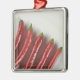 Opinión de alto ángulo de cinco pimientas de chile rojo en una placa. Copyright: Glowimages