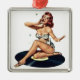 Clásico Chica Pin Up sentado en Record. El arte vintage del divertido chica de afición está disponible en todo, desde Mugs, toallas para ratón, relojes, dardos y mucho más.