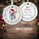 Un adorable y pequeño pingüino patina a través de este divertido adorno navideño. El pingüino lleva una bufanda de invierno de rayas rojas y blancas y un sombrero de Santa. Alrededor de la imagen hay una baya roja bonito y una corona de hojas huecas. La parte posterior del ornamento tiene la misma corona con el texto en rojo "MERRY CHRISTMAS", más tres campos de texto más para su personalizar.