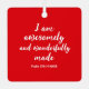 Este adorno cuenta con un potente versículo de la Biblia del Libro de los Salmos y un saludo de temporada en la parte trasera.