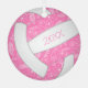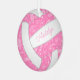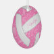 Este adorable adorno de voleibol presenta la imagen realista de un voleibol que tiene paneles rosas y blancos y un delicado patrón de doodle de paisajes, flores y plumas en blanco sobre los paneles rosados - personalizable con su nombre en la parte delantera, año tras año - por katz_d_zynes