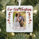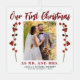 La primera Navidad de la pareja casada como el Sr. y la Sra. un árbol de keepsake único adorno con ramas de bayas rojas, su foto personalizado y texto de escritura de tipografía moderna roja. ++++++++ Puede ser un regalo hermoso para los recién casados.