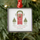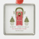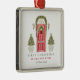 Celebra la primera Navidad en tu nuevo hogar con este bonito diseño de acuarela con el ilustracion de una puerta roja - decorada para la temporada navideña y dos árboles de Navidad.