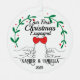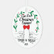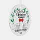 Primeras Navidades Involucradas Dos manos hacen un brindis con latigazos del corazón rojo rodeados de una minimalista corona hueca. Encima de las manos se lee: "Nuestra primera Navidad se comprometió". Puede personalizar los nombres. La parte posterior del adorno muestra la misma corona minimalista del frente. Hay un cuadro de texto si quieres agregar un sentimiento dulce a tu novia o a la pareja.
