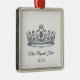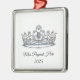 This silver-colored premium metal ornament is shown with a sparkling crystal tiara with black text on a white background.