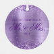 Crea tu propia "Nuestra primera primera Navidad como Sra. y Sr.", símbolo metalizado de foto circular para recién casados. Purpurina morado falso y arte digital de Relieve metalizado de color morado claro. Añade tu imagen de boda o luna de miel. Se puede personalizar el estilo de texto, el tipo de letra o el color púrpura real.