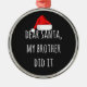 Adorno Metálico Querido Santa Mi Hermano lo hizo Navidades diverti