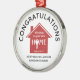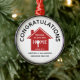 Un elegante ornamento NUEVO HOME, diseñado como un regalo de cierre entre clientes. TODO EL TEXTO ES TOTALMENTE PERSONALIZABLE, por lo que puede personalizar la redacción para que se ajuste a su marca corporativa. El texto dice FELICITACIONES y BENDICIONES EN TU NUEVO HOGAR con un versículo opcional de la Biblia Joshua 24:15 - En cuanto a mí y a mi casa, serviremos al Señor. La imagen muestra una casa roja con tipografía blanca. La O de HOME se sustituye por una clave. En la parte inferior, puede agregar su nombre/nombre de empresa y fecha. Artículos coincidentes disponibles para que pueda crear juegos de regalos corporativos para sus clientes. Hay otros colores disponibles.