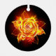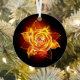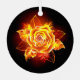 Rosa en llamas del fuego y la llama sobre fondo negro.