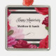 Este regalo, recuerdo, regalo o fiesta de boda, es esencial para el aniversario, tiene rayas negras en el fondo y varias rosas rosas rojas y rosas rojas de colores alrededor de los lados y el fondo. Hermoso y moderno artículo para personalizar con los nombres de la pareja para ofrecer un maravilloso recuerdo en su aniversario.