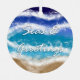 Blue and teal waves on a sandy beach pretty beach house inspired Tropical Christmas Ornament.