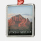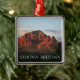 Ornamento cuadrado premium con la imagen de varias formaciones rojas en Sedona, Arizona, iluminado por una asombrosa puesta de sol roja y naranja. Vea toda la colección de ornamentos de Arizona en la sección HOME.