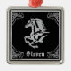 Personaliza este singular ornamento navideño "Uno de bondad"! Tiene un... Silhouette De Caballo Plateado Clásico Rodeado De Fronteras Plateadas Y Negras. Diseño De Arte Original Por El Artista Kerry Miller!