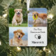 Honra a tu mejor amiga con un mascota personalizado conmemorativo adorno de collage de fotos en un diseño blanco y negro. Este original monogramado único y el adorno conmemorativo del mascota del conservador de fotos de nombre es el regalo perfecto para usted, familia o amigos para honrar a los seres queridos. Esperamos que la foto de su perro con adoración de memoria te traiga alegría, paz y recuerdos felices. Personalizar con 3 de sus fotos favoritas de sus seres queridos, monograma inicial y nombre personalizado. Vea 'personalizar esta plantilla' para cambiar fotos , iniciales y nombre . Es mejor recortar las fotos centradas antes de subir. DERECHOS RESERVADOS © 2024 Judy Burrows, Black Dog Art - Todos los derechos reservados. Simpatía en memoria de mascotas 3 Collages de fotos Ornamento Metalizado