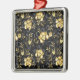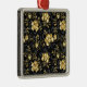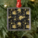 Patrón incomparable con orquídeas negras y doradas, ricamente decoradas con ramas negras de eucalipto y delicadas ramitas de pistacho de joyas sobre fondo negro. Orquídea de joyería de oro.