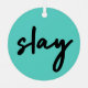 Simple, elegante, de moda "slay" cita urbana navidad decoración de árboles de arte en moderna tipografía minimalista de estilo escritura a mano en negro sobre un fondo verde cian inspirado en la belleza, luciendo impresionante, matándolo y el poder chica!
