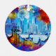 SlipperyJoe NYC luna de graffiti rodeada de nubes dramáticas giratorias cielo intensos degradados de color vívido paisaje urbano realismo fantasía rascacielos edificios mashup grit urbano artístico de ensueño similar orgullo gay regalos LGBTQIA blues fiery rods púrpura amarillos soñar casi como narración de ciencia ficción tonos fríos energía