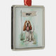 This Spinone Italiano personalized ornament features a watercolor design with a customizable name flag, framed in silver with a red ribbon. A sweet keepsake.