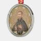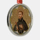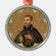 San Pedro Claver (1580-1654) era sacerdote y misionero jesuita español. En 1610, San Pedro se ofreció como voluntario para prestar servicios en el Nuevo Reino de Granada en las Américas, que abarcó a Panamá, Colombia y Venezuela, actualmente presentes. Allí trabajó durante cuarenta años en el ministerio de esclavos a su llegada a Cartagena, un importante centro de la trata transatlántica de esclavos, y en las plantaciones de la campiña vecina. Sus incansables esfuerzos no sólo para convertir a los esclavos al catolicismo predicando a Cristo crucificado, sino para mejorar sus sufrimientos, le valieron el epíteto "Esclavo de los africanos". + Acá San Pedro se muestra vestido con atuendo jesuita —una sotana negra y capa collarada. Sostiene una sencilla cruz de madera marrón y una corona de espinas, símbolos de Jesús como "un hombre de penas y conocido de dolor" (Isaías 53:3). La imagen se encierra en un marco interior que recuerda a una ventana gótica de ocho pétalos de rosa (o rueda); las esquinas del marco exterior simple y cuadrado están llenas de cardos heráldicos. + San Pedro Claver murió el 8 de septiembre de 1654 por causas naturales después de una larga enfermedad. Es el santo patrono de la justicia interracial, afroamericanos, misiones africanas, esclavos y la República de Colombia. + Fiesta: 9 de septiembre + Crédito de la imagen (BK 058): Imagen antigua de S[aint] Petrus [Peter] Claver, S.J., publicada originalmente en cromolitografía por B. Kühlen, Mönchengladbach, Alemania, serie jesuita no numerada, finales del siglo XIX, de la colección privada de ephemera religiosa del diseñador.