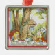Ornamento cuadrado premium con una imagen vintage de Alicia en el País de las Maravillas del fiesta del té de Mad Hatter, con Alicia, la liebre de la Marcha y Dormouse. Frontera roja. Ver toda la colección de ornamentos de Wonderland en los TOUCHES ESPECIALES | Sección de favoritos de partido.