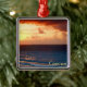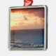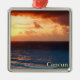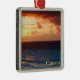 Ornamento cuadrado premium con la imagen de una pintura acuarela de un hermoso amanecer rojo y dorado sobre el océano en Cancún, Quintana Roo, México. Vea toda la colección de Ornamentos de México en la sección HOME.