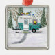 Un dulce tráiler teal en la nieve se prepara para la Navidad en este hermoso adorno de Navidad. Deleite a sus amigos campistas con un regalo especial único. Perfecto para el que vive en una van o para el que pasa todo el tiempo en una RV.