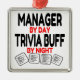 Este fantástico diseño de texto con la frase "Manager by Day Trivia Buff by Night" con tarjetas trivia es perfecto para cualquier entrenador que ame jugar trivia.