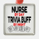 Este genial diseño de texto con la frase "Enfermera por día, trivia, bofetada por noche" con tarjetas triviales es perfecto para cualquier enfermera que le guste jugar a la trivia.