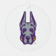 Este diseño es un acercamiento de la cabeza de mascota de la Universidad de Albany Great Dane. El ilustracion utiliza contornos violetas audaces con un sombreado detallado en gris para la cara del Gran Danés, resaltando sus rasgos angulares. Los ojos son agudos, y la expresión transmite alerta y fuerza. Los acentos de oro aparecen a ambos lados de la mandíbula del perro, añadiendo un toque de calidez a la otra apariencia feroz. Los oídos están erguidos y apuntan, reforzando el sentido de disposición y autoridad del logo. El diseño es mínimo pero poderoso, ideal para marcar la identidad atlética de la UAlbany.