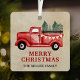Elegant Christmas ornament featuring a beautiful red truck with Christmas trees.