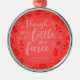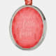 Este ornamento precioso ofrece la cita del El sueño de una noche de verano de William Shakespeare "aunque ella sea pero poco, ella es feroz" rodeada por las flores y las hojas contra un fondo rojo de la pendiente.