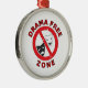 Un cartel de tránsito con las palabras: zona libre de dramas. Texto con imágenes de máscaras griegas de comedia y tragedia. Efecto angustiado aplicado al diseño.