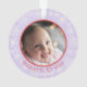 Este adorno navideño presenta un lindo y caprichoso muñeco de nieve y diseño de copos de nieve con un falso purpurina de oro. Personalice la parte posterior con su nombre, año y foto. Esta plantilla funciona mejor con fotos en formato de paisaje con el bebé en el centro.