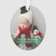 Este sencillo y elegante adorno de dos caras para el descanso incluye una foto favorita de su recién nacido con un sencillo superpuesto de rayas verdes translúcidas con el moderno texto "Mis primeros Navidades" que puede ser personalizado con el nombre del bebé y su año de nacimiento. El color verde neutro es el que funciona tanto para un niño como para una niña.
