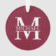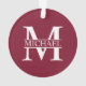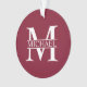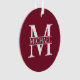Regalos personalizados de Monograma y Nombre con monograma blanco personalizado en estilo clásico de tipo de letra serif con caja de nombre en medio del monograma sobre fondo rojo burdeos.