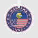 Bandera de Montana con bandera de Montana y bandera de los colores de Estados Unidos, forma redondeada. Emblema de Montana. Sello de Montana. Colección de Estados Unidos.